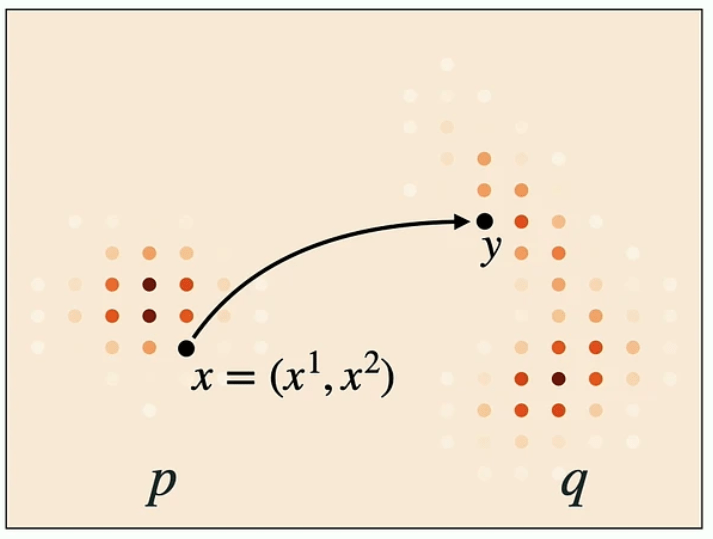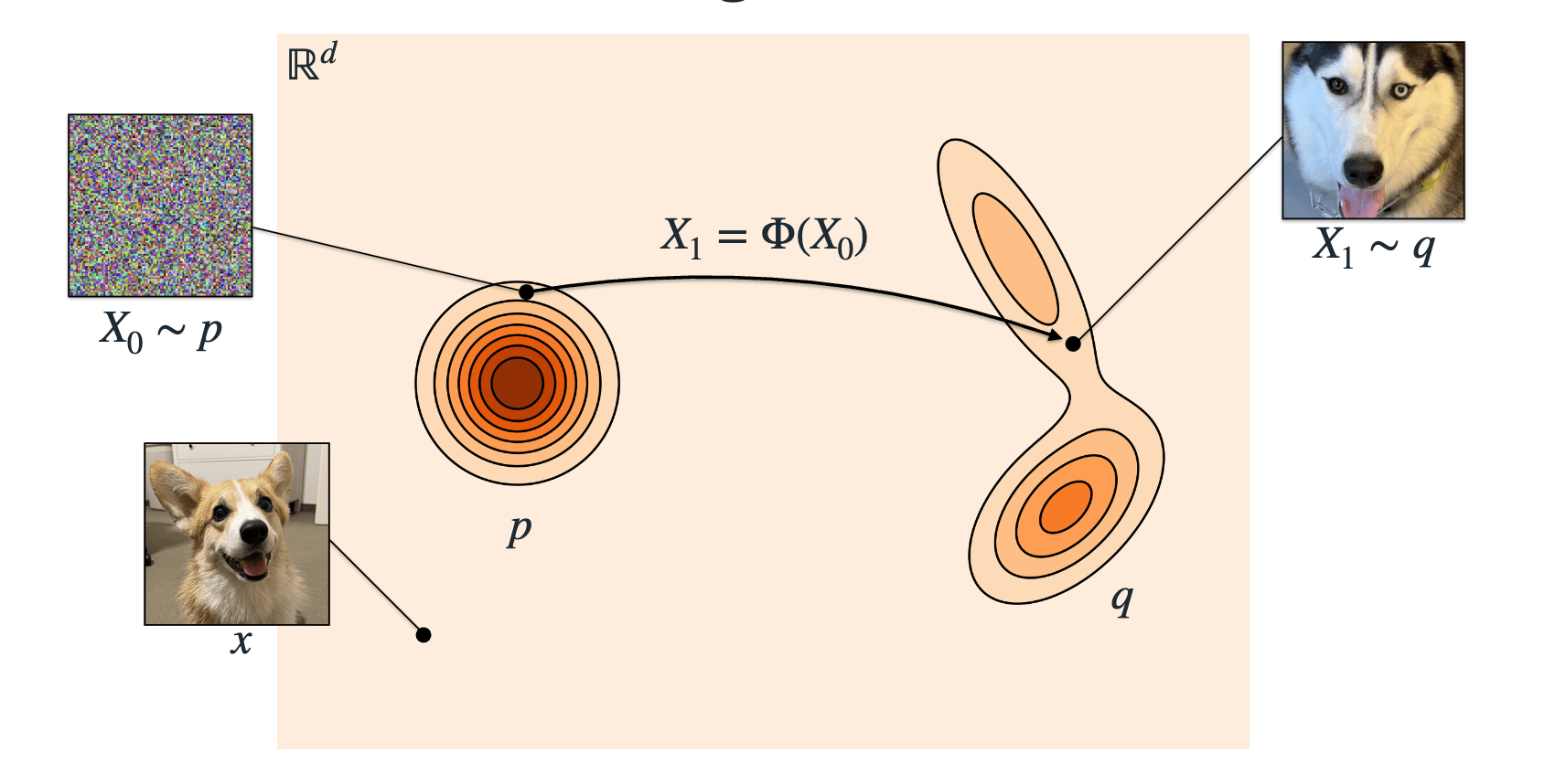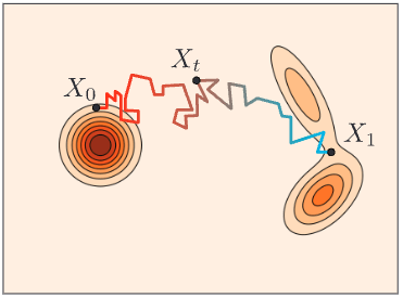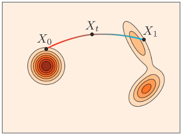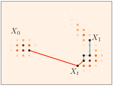 - Once learning a velocity field \(u^\theta_t(\mathcal{T})\) from data, we can generate new trajectories by integrating: \[^{t+\Delta t}\mathcal{T} \gets ^t\mathcal{T} + u_t^\theta( ^t\mathcal{T}) \cdot \Delta t\]
