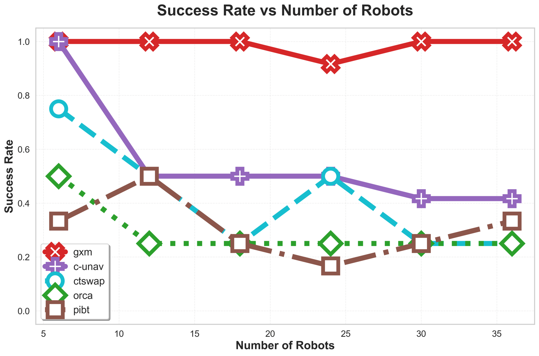 To mitigate these issues, we developed the "\(\text{G\scriptsize SPI}\)" algorithm, a "continuous-space" hybrid adaptation of PIBT with gaol-swapping inpired by TSWAP and C-UNAV.