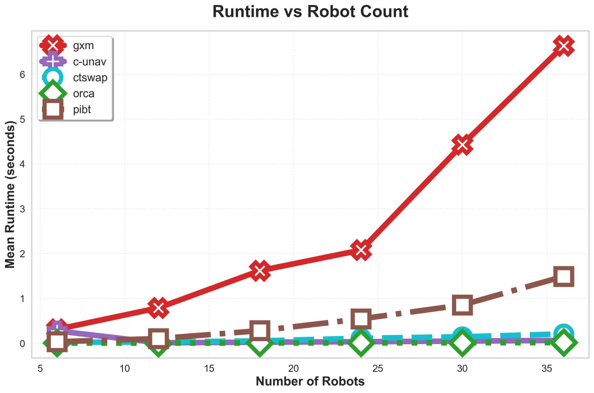 - Sum of costs or makespan (the time taken for all robots to arrive at goals).